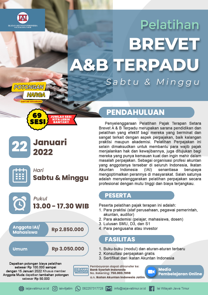 Telah dibuka pendaftaran kelas Online Brevet A dan B mulai kelas 22 Januari 2022 (Setiap Sabtu dan Minggu) Pukul 13.00 – 17.30 WIB.