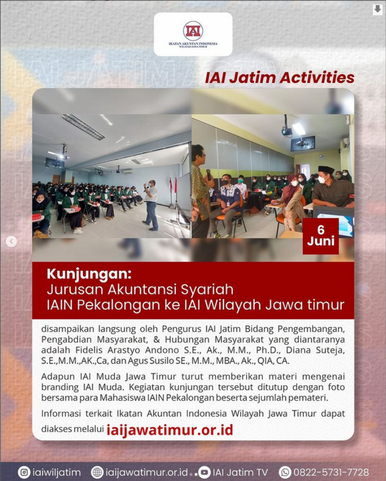 Informasi terkait Ikatan Akuntan Indonesia Wilayah Jawa Timur dapat diakses melalui iaijawatimur.or.id